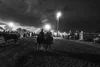 Shane Hanchey of Selphur, Louisiana, and Marvin Tavarez Jr. of Pleasanton, Texas, ride toward the arena in the lead-up to the tie-down roping event at the Wyoming State Fair in Douglas, 2020.
